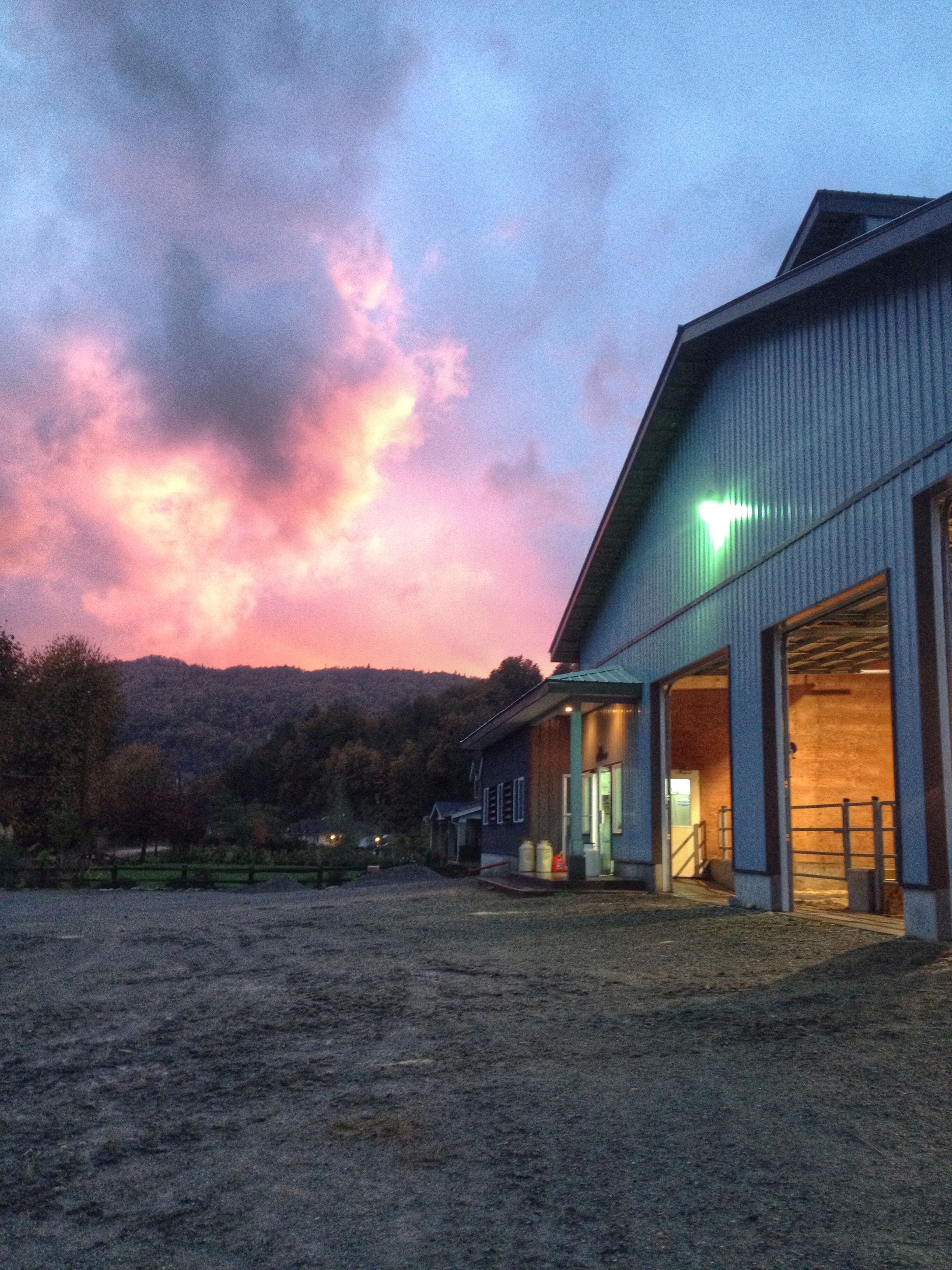 After we feed the calves warm milk in bottles and nipple buckets, we check the other young stock to be certain they also have enough food and are comfortable, then finally head into the house for our own dinner. And on some nights, we’re lucky enough to enjoy a view like this:
