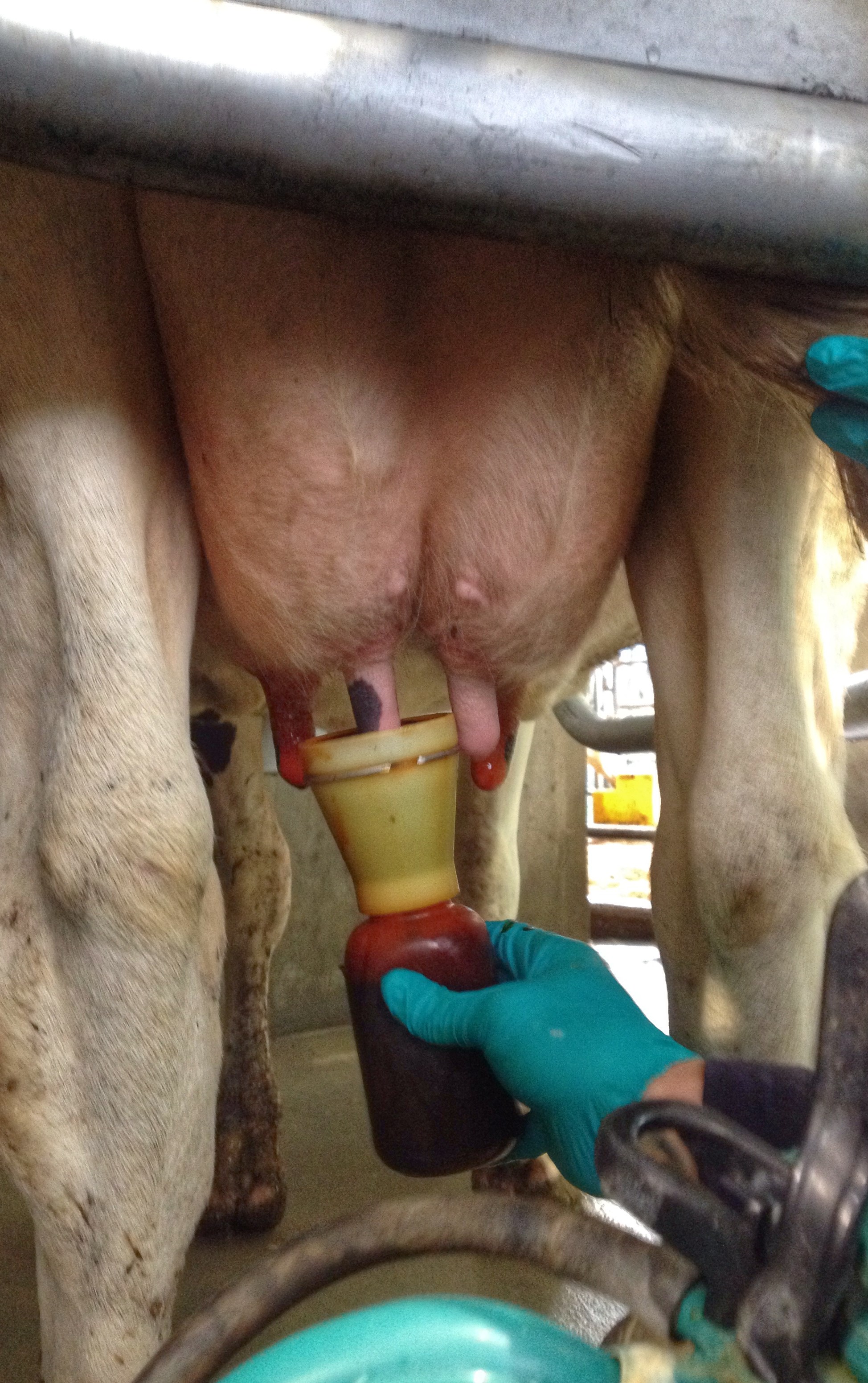 After the machine detach, each teat is dipped in an iodine solution. The iodine helps to ensure that no bacteria will enter the still slightly open teat end, and also conditions the skin of the teat, keeping it smooth and supple, free of cracks and dryness.